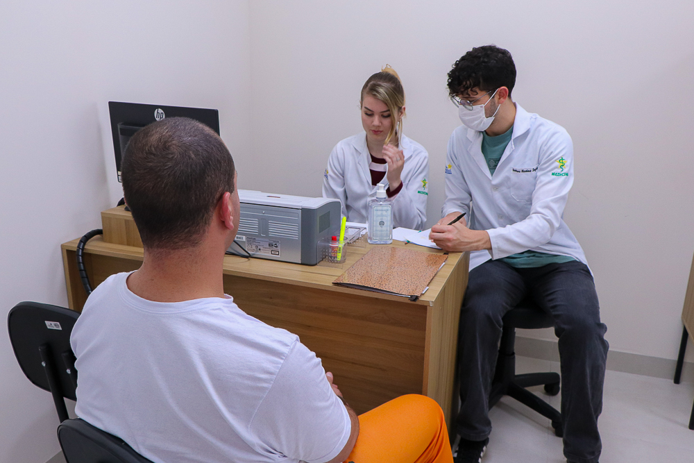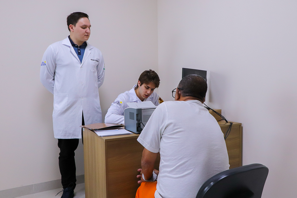 Os primeiros atendimentos foram realizados na especialidade de dermatologia, beneficiando 96 custodiados. A ação foi conduzida pelos acadêmicos do curso de Medicina, sob a supervisão de um professor e médico dermatologista.
